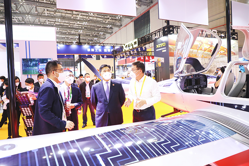 11月6日,商務(wù)部黨組成員、副部長(cháng)盛秋平,商務(wù)部服貿司司長(cháng)、進(jìn)博會(huì )組委會(huì )秘書(shū)處副秘書(shū)長(cháng)王東堂參觀(guān)進(jìn)博會(huì )萬(wàn)豐鉆石飛機展位,新昌縣副縣長(cháng)李江陪同參觀(guān)。