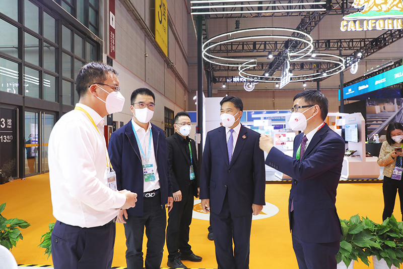 商務(wù)部副部長(cháng)盛秋平一行參觀(guān)進(jìn)博會(huì )萬(wàn)豐鉆石展位