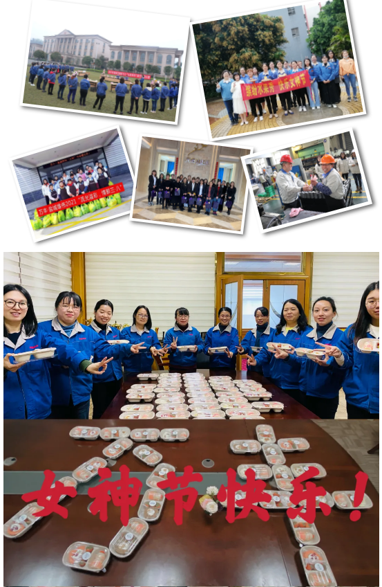 百年征程波瀾壯闊,魅力女性永綻芳華。展望2021年,我們迎來(lái)“十四五”開(kāi)局之年和現代化征程開(kāi)啟之年。世界處在百年未有之大變局,機遇與挑戰并存,我們萬(wàn)豐的姐妹們在偉大新時(shí)代構建“雙循序”新發(fā)展格局的征程中,要不忘初心、牢記使命,堅定不移聽(tīng)黨話(huà)、感黨恩、跟黨走,推動(dòng)生產(chǎn)力高質(zhì)量發(fā)展。每個(gè)人都要加強學(xué)習、發(fā)展能力,以女性的細致、精致和極致,深耕自己的“一畝三分地”,努力成為本行業(yè)本崗位的領(lǐng)跑者;要悟道修身、提升素養,以女性的優(yōu)雅、知性和內涵,經(jīng)營(yíng)好我們的家庭、婚姻和事業(yè),書(shū)寫(xiě)“半邊天”更加華麗的篇章;要以?shī)^斗創(chuàng )造美好生活,為助推萬(wàn)豐高質(zhì)量發(fā)展,為振興地方經(jīng)濟、推動(dòng)行業(yè)進(jìn)步、促進(jìn)社會(huì )發(fā)展貢獻巾幗智慧和力量,以?xún)?yōu)異成績(jì)向建黨一百周年獻禮!